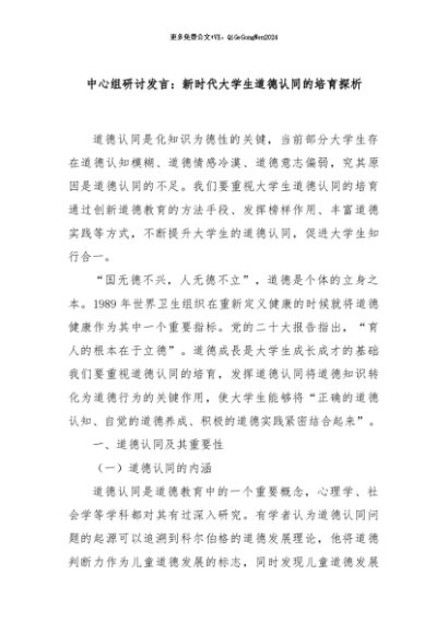 / 【七哥公文】2024年:中心组研讨发言:新时代大学生道德认同的培育探析+更多免费公文+VX:QiGeGongWen2024