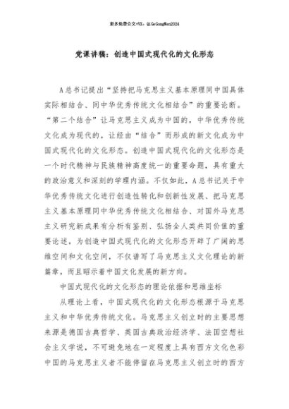 / 【七哥公文】2024年:党课讲稿:创造中国式现代化的文化形态+更多免费公文+VX:QiGeGongWen2024