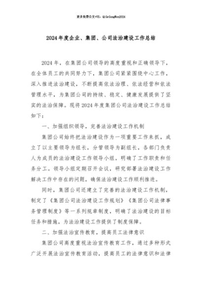 【七哥公文】2024年:2024年度企业、集团、公司法治建设工作总结 (1)+更多免费公文+VX:QiGeGongWen2024
