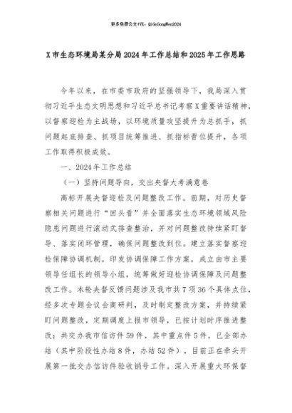 【七哥公文】2024年:X市生态环境局某分局2024年工作总结和2025年工作思路+更多免费公文+VX:QiGeGongWen2024