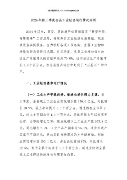 / 【七哥公文】2024年:2024年前三季度全县工业经济运行情况分析+更多免费公文+VX:QiGeGongWen2024