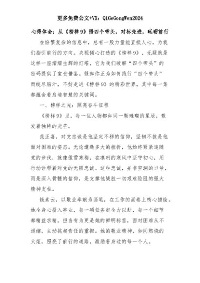 【七哥公文】2025年:心得体会:从《榜样9》悟四个带头,对标先进,砥砺前行+更多免费公文+VX:QiGeGongWen2024+更多免费公文+VX:QiGeGongWen2024