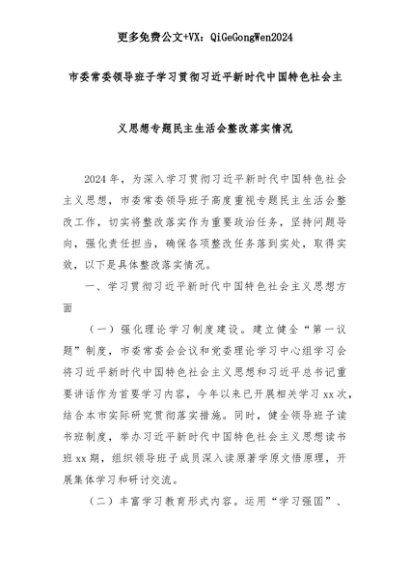 【七哥公文】2025年:市委常委领导班子学习贯彻习近平新时代中国特色社会主义思想专题民主生活会整改落实情况+更多免费公文+VX:QiGeGongWen2024+更多免费公文+VX:QiGeGongWen2024