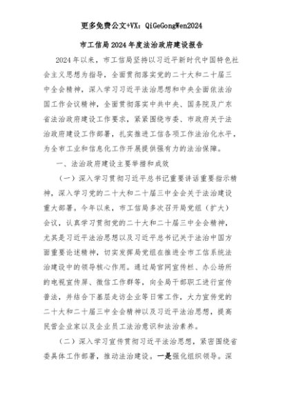 【七哥公文】2025年:市工信局2024年度法治政府建设报告+更多免费公文+VX:QiGeGongWen2024+更多免费公文+VX:QiGeGongWen2024