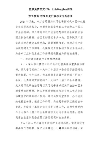 【七哥公文】2025年:市工信局2024年度行政执法分析报告+更多免费公文+VX:QiGeGongWen2024+更多免费公文+VX:QiGeGongWen2024