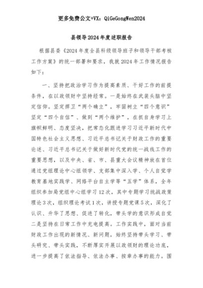 【七哥公文】2025年:县领导2024年度述职报告+更多免费公文+VX:QiGeGongWen2024+更多免费公文+VX:QiGeGongWen2024