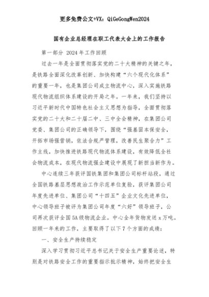 【七哥公文】2025年:国有企业总经理在职工代表大会上的工作报告+更多免费公文+VX:QiGeGongWen2024+更多免费公文+VX:QiGeGongWen2024