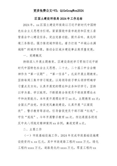 【七哥公文】2025年:区国土建设环保局2024年工作总结+更多免费公文+VX:QiGeGongWen2024+更多免费公文+VX:QiGeGongWen2024