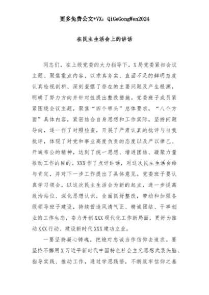 【七哥公文】2025年:在民主生活会上的讲话+更多免费公文+VX:QiGeGongWen2024+更多免费公文+VX:QiGeGongWen2024