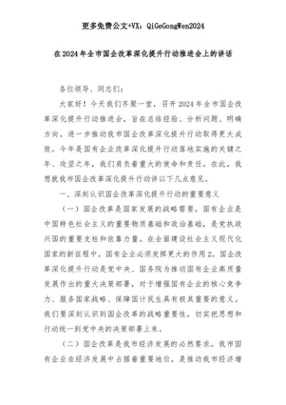 【七哥公文】2025年:在2024年全市国企改革深化提升行动推进会上的讲话+更多免费公文+VX:QiGeGongWen2024+更多免费公文+VX:QiGeGongWen2024