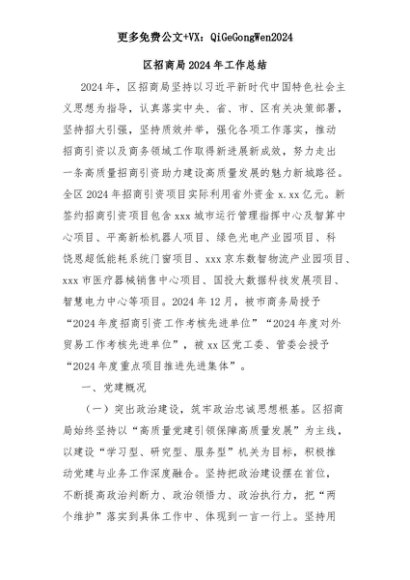 【七哥公文】2025年:区招商局2024年工作总结+更多免费公文+VX:QiGeGongWen2024+更多免费公文+VX:QiGeGongWen2024