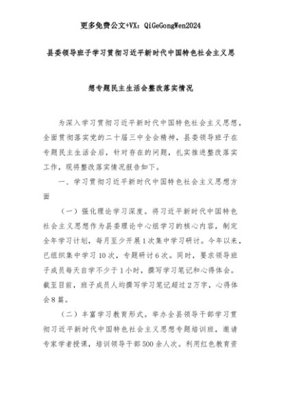 【七哥公文】2025年:县委领导班子学习贯彻习近平新时代中国特色社会主义思想专题民主生活会整改落实情况+更多免费公文+VX:QiGeGongWen2024+更多免费公文+VX:QiGeGongWen2024