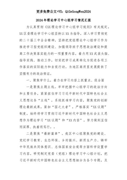 【七哥公文】2025年:2024年理论学习中心组学习情况汇报+更多免费公文+VX:QiGeGongWen2024+更多免费公文+VX:QiGeGongWen2024