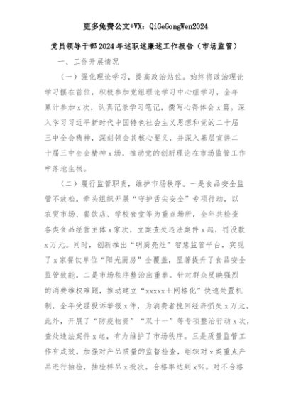 【七哥公文】2025年:党员领导干部2024年述职述廉述工作报告(市场监管)+更多免费公文+VX:QiGeGongWen2024+更多免费公文+VX:QiGeGongWen2024