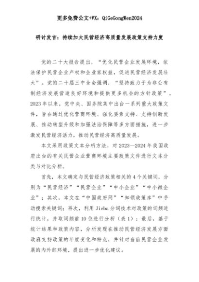 【七哥公文】2025年:研讨发言:持续加大民营经济高质量发展政策支持力度+更多免费公文+VX:QiGeGongWen2024+更多免费公文+VX:QiGeGongWen2024