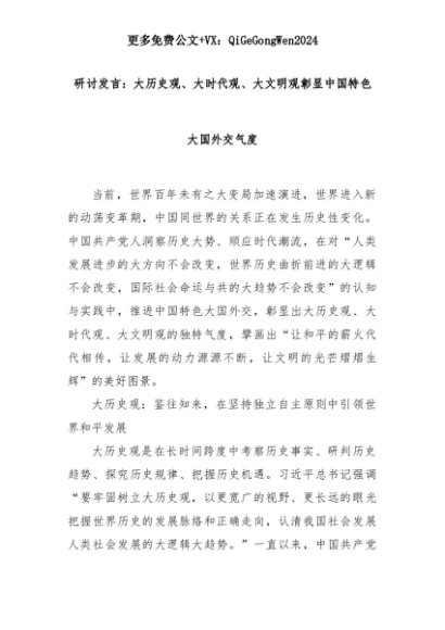【七哥公文】2025年:研讨发言:大历史观、大时代观、大文明观彰显中国特色大国外交气度+更多免费公文+VX:QiGeGongWen2024+更多免费公文+VX:QiGeGongWen2024