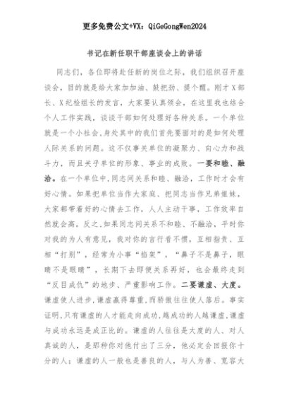 【七哥公文】2025年:书记在新任职干部座谈会上的讲话+更多免费公文+VX:QiGeGongWen2024+更多免费公文+VX:QiGeGongWen2024