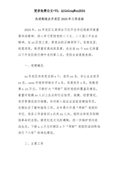 【七哥公文】2025年:先进制造业开发区2024年工作总结+更多免费公文+VX:QiGeGongWen2024+更多免费公文+VX:QiGeGongWen2024
