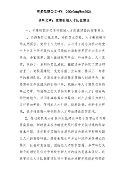 【七哥公文】2025年:调研文章:党建引领人才队伍建设+更多免费公文+VX:QiGeGongWen2024+更多免费公文+VX:QiGeGongWen2024