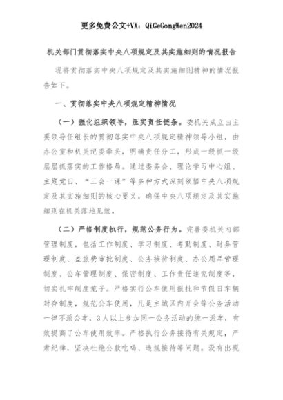 【七哥公文】2025年:机关部门贯彻落实中央八项规定及其实施细则的情况报告+更多免费公文+VX:QiGeGongWen2024+更多免费公文+VX:QiGeGongWen2024
