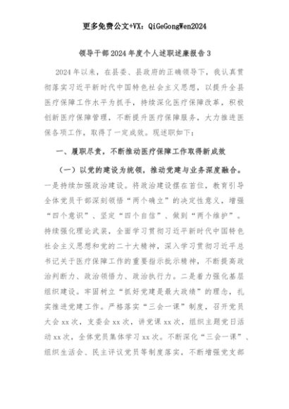 【七哥公文】2025年:领导干部2024年度个人述职述廉报告3+更多免费公文+VX:QiGeGongWen2024+更多免费公文+VX:QiGeGongWen2024