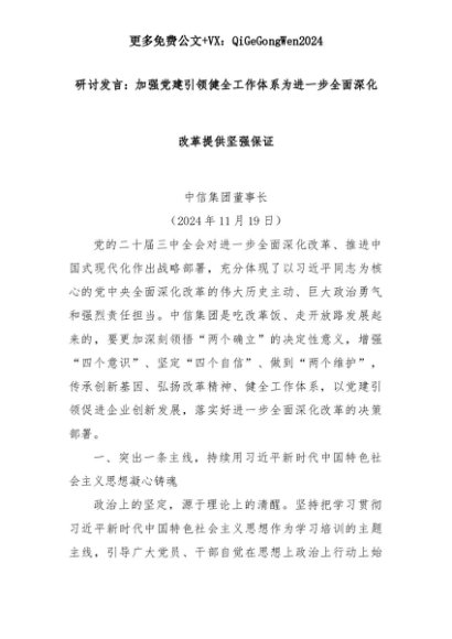 【七哥公文】2025年:研讨发言:加强党建引领健全工作体系为进一步全面深化改革提供坚强保证+更多免费公文+VX:QiGeGongWen2024+更多免费公文+VX:QiGeGongWen2024