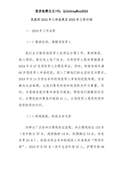 【七哥公文】2025年:民政所2024年工作成果及2025年工作计划+更多免费公文+VX:QiGeGongWen2024+更多免费公文+VX:QiGeGongWen2024