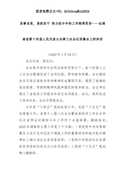 【七哥公文】2025年:实事求是、真抓实干 努力把今年的工作做得更好——在湖南省第十四届人民代表大会第三次会议闭幕会上的讲话+更多免费公文+VX:QiGeGongWen2024+更多免费公文+VX:QiGeGongWen2024