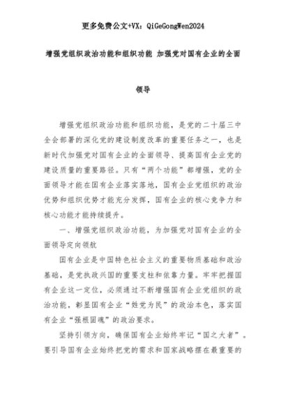 【七哥公文】2025年:增强党组织政治功能和组织功能 加强党对国有企业的全面领导+更多免费公文+VX:QiGeGongWen2024+更多免费公文+VX:QiGeGongWen2024