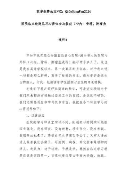 【七哥公文】2025年:医院临床轮岗见习心得体会与收获(心内,骨科,肿瘤血液科)+更多免费公文+VX:QiGeGongWen2024+更多免费公文+VX:QiGeGongWen2024