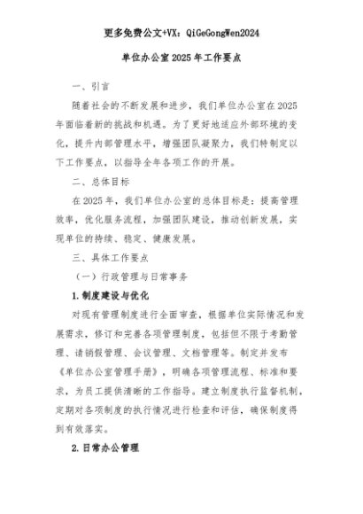 【七哥公文】2025年:单位办公室2025年工作要点+更多免费公文+VX:QiGeGongWen2024+更多免费公文+VX:QiGeGongWen2024