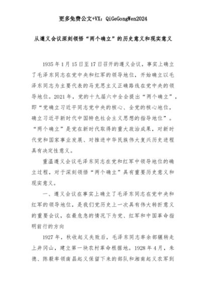 【七哥公文】2025年:从遵义会议深刻领悟“两个确立”的历史意义和现实意义+更多免费公文+VX:QiGeGongWen2024+更多免费公文+VX:QiGeGongWen2024