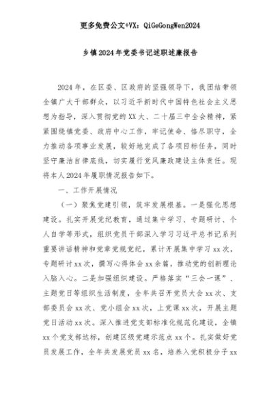 【七哥公文】2025年:乡镇2024年党委书记述职述廉报告+更多免费公文+VX:QiGeGongWen2024+更多免费公文+VX:QiGeGongWen2024