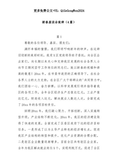 【七哥公文】2025年:(4篇)新春座谈会致辞+更多免费公文+VX:QiGeGongWen2024+更多免费公文+VX:QiGeGongWen2024