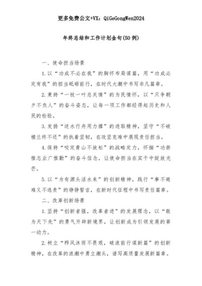 【七哥公文】2025年:(50例)年终总结和工作计划金句+更多免费公文+VX:QiGeGongWen2024+更多免费公文+VX:QiGeGongWen2024