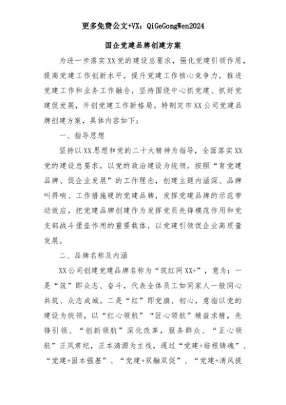 【七哥公文】2025年:国企党建品牌创建方案+更多免费公文+VX:QiGeGongWen2024+更多免费公文+VX:QiGeGongWen2024