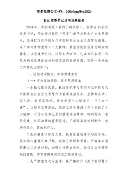 【七哥公文】2025年:社区党委书记述职述廉报告+更多免费公文+VX:QiGeGongWen2024+更多免费公文+VX:QiGeGongWen2024