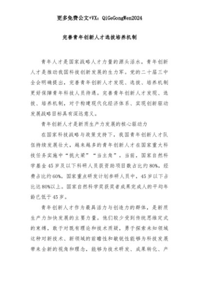 【七哥公文】2025年:完善青年创新人才选拔培养机制+更多免费公文+VX:QiGeGongWen2024+更多免费公文+VX:QiGeGongWen2024