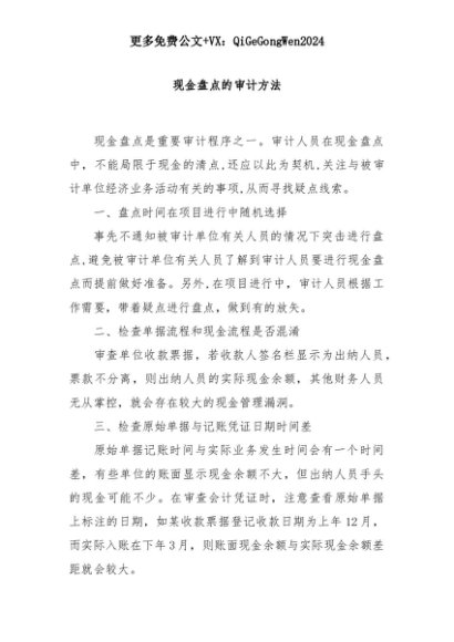 【七哥公文】2025年:现金盘点的审计方法+更多免费公文+VX:QiGeGongWen2024+更多免费公文+VX:QiGeGongWen2024