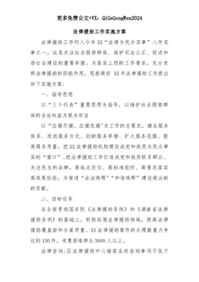 【七哥公文】2025年:法律援助工作实施方案+更多免费公文+VX:QiGeGongWen2024+更多免费公文+VX:QiGeGongWen2024