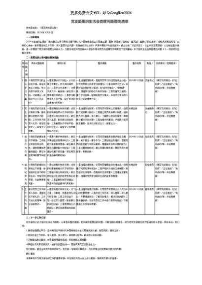 【七哥公文】2025年:党支部组织生活会查摆问题整改清单+更多免费公文+VX:QiGeGongWen2024+更多免费公文+VX:QiGeGongWen2024