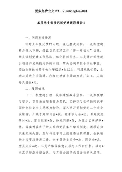 【七哥公文】2025年:基层党支部书记抓党建述职报告2+更多免费公文+VX:QiGeGongWen2024+更多免费公文+VX:QiGeGongWen2024