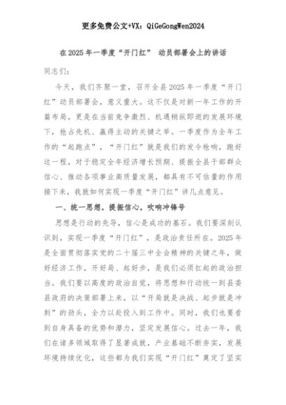 【七哥公文】2025年:在2025年一季度“开门红” 动员部署会上的讲话+更多免费公文+VX:QiGeGongWen2024+更多免费公文+VX:QiGeGongWen2024