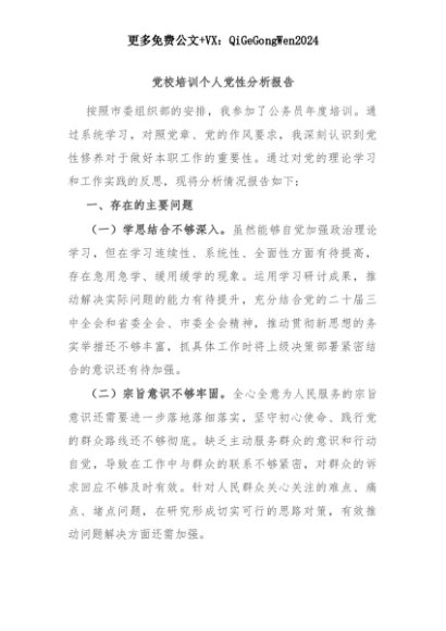 【七哥公文】2025年:党校培训个人党性分析报告+更多免费公文+VX:QiGeGongWen2024+更多免费公文+VX:QiGeGongWen2024