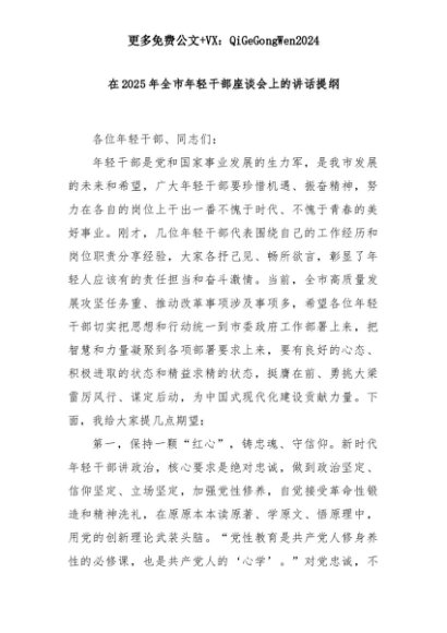 【七哥公文】2025年:在2025年全市年轻干部座谈会上的讲话提纲+更多免费公文+VX:QiGeGongWen2024+更多免费公文+VX:QiGeGongWen2024