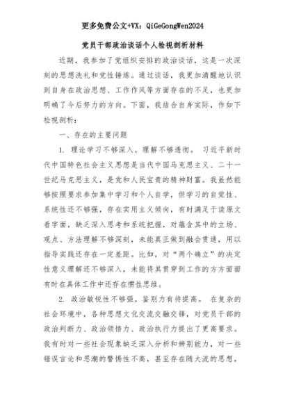 【七哥公文】2025年:党员干部政治谈话个人检视剖析材料+更多免费公文+VX:QiGeGongWen2024+更多免费公文+VX:QiGeGongWen2024