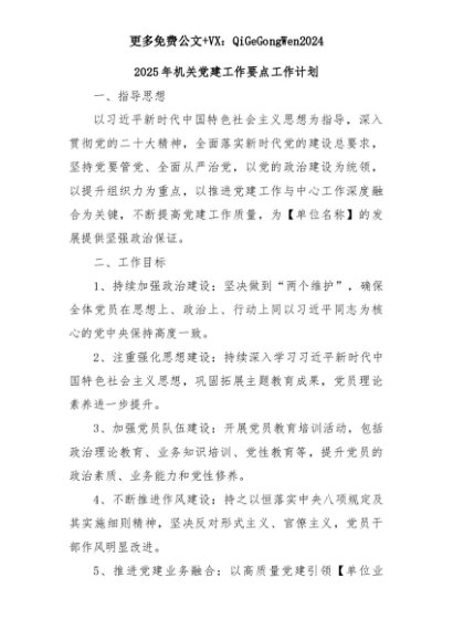 【七哥公文】2025年:2025年机关党建工作要点工作计划+更多免费公文+VX:QiGeGongWen2024+更多免费公文+VX:QiGeGongWen2024