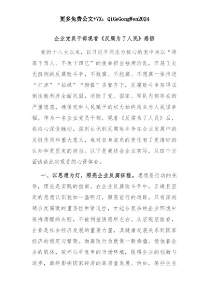 【七哥公文】2025年:企业党员干部观看《反腐为了人民》感悟+更多免费公文+VX:QiGeGongWen2024+更多免费公文+VX:QiGeGongWen2024