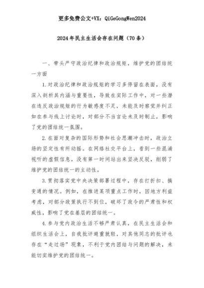 【七哥公文】2025年:2024年民主生活会存在问题(70条)+更多免费公文+VX:QiGeGongWen2024+更多免费公文+VX:QiGeGongWen2024