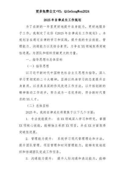 【七哥公文】2025年:2025年自律成长工作规划+更多免费公文+VX:QiGeGongWen2024+更多免费公文+VX:QiGeGongWen2024